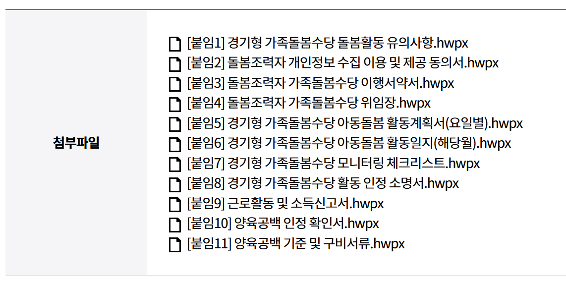 - 신청 방법: 경기민원24 온라인 신청 / 양육자가 돌봄 조력자 위임장을 받아 일괄 신청