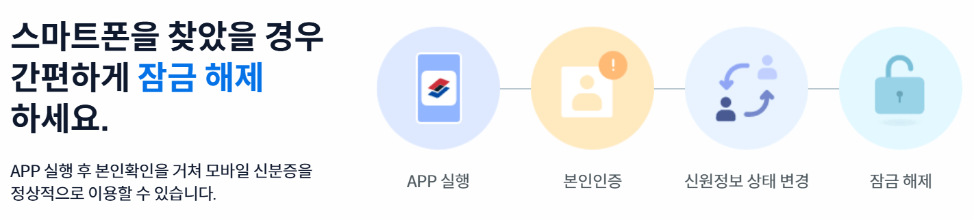 ☑️ 도난 분실 신고 시 즉시 모바일 신분증 잠금 상태로 전환되어 타인으로부터 정보 노출을 차단
