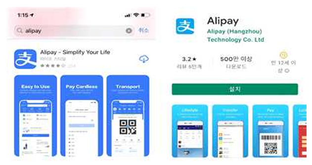 1. 앱 스토어, 구글플레이 스토어에서 알리페이 검색 후 앱 다운로드
