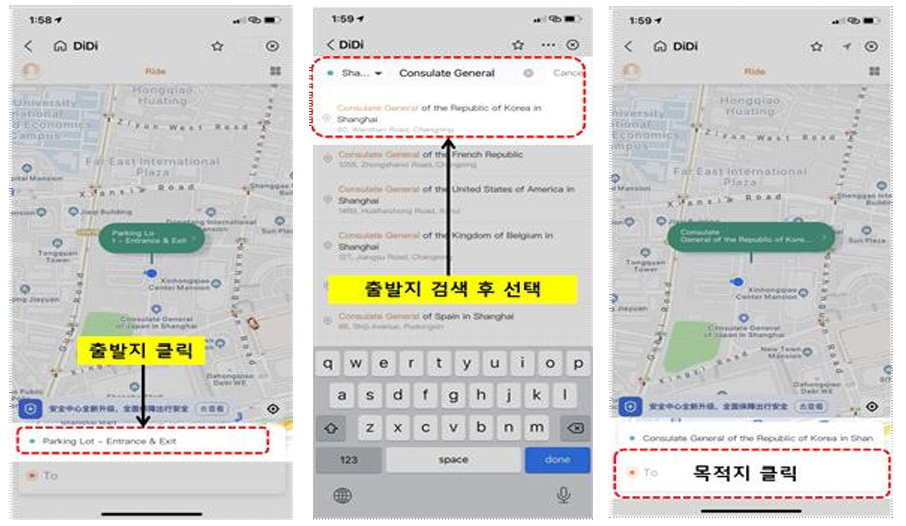 ※ 다만 디디추싱의 경우 출발지 및 목적지를 중문(中文)으로 입력해야 한다는 점이 사용상의 제약요인