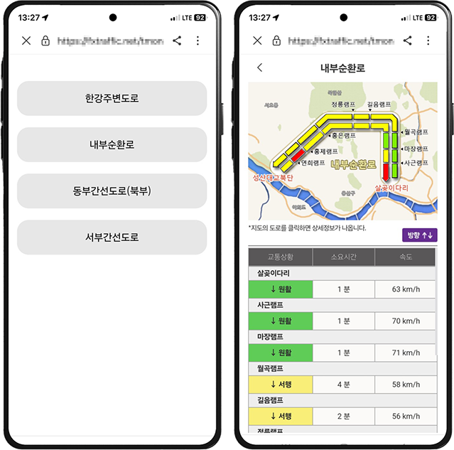 한강/순환로 등 주요 구간 실시간 확인 가능